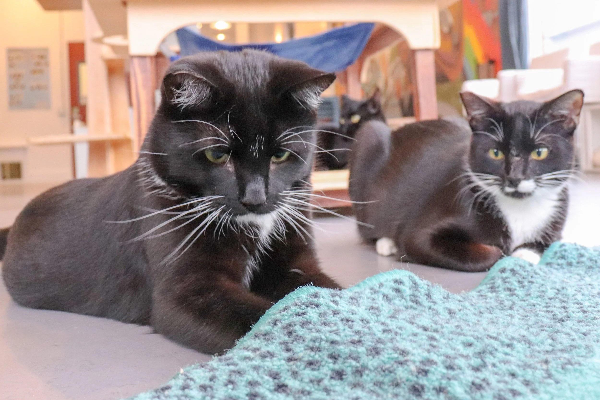 Cats constantly observe and learn from one another, which is why we often recommend an under-socialized cat go home with another cat, or require the adopters have a resident cat. Being around a more confident cat can help bring a shy cat out of their shell and teach them valuable life skills more quickly. There are many reasons why you might want to consider adopting a second cat, or a pair of cats. Read our blog post “4 Reasons to Adopt a Bonded Pair” to learn more!