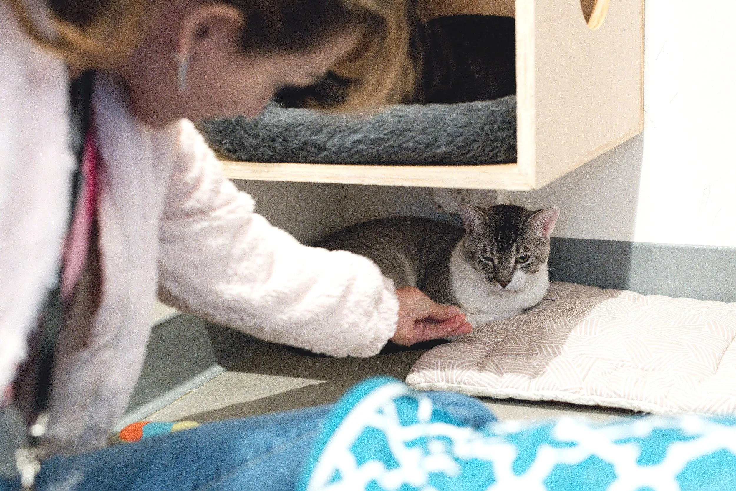Provided a cage-free environment where shy cats feel relaxed while connecting with nearly 10,000 guests and potential adopters every year, doubling the number of cats we could help in foster care alone.