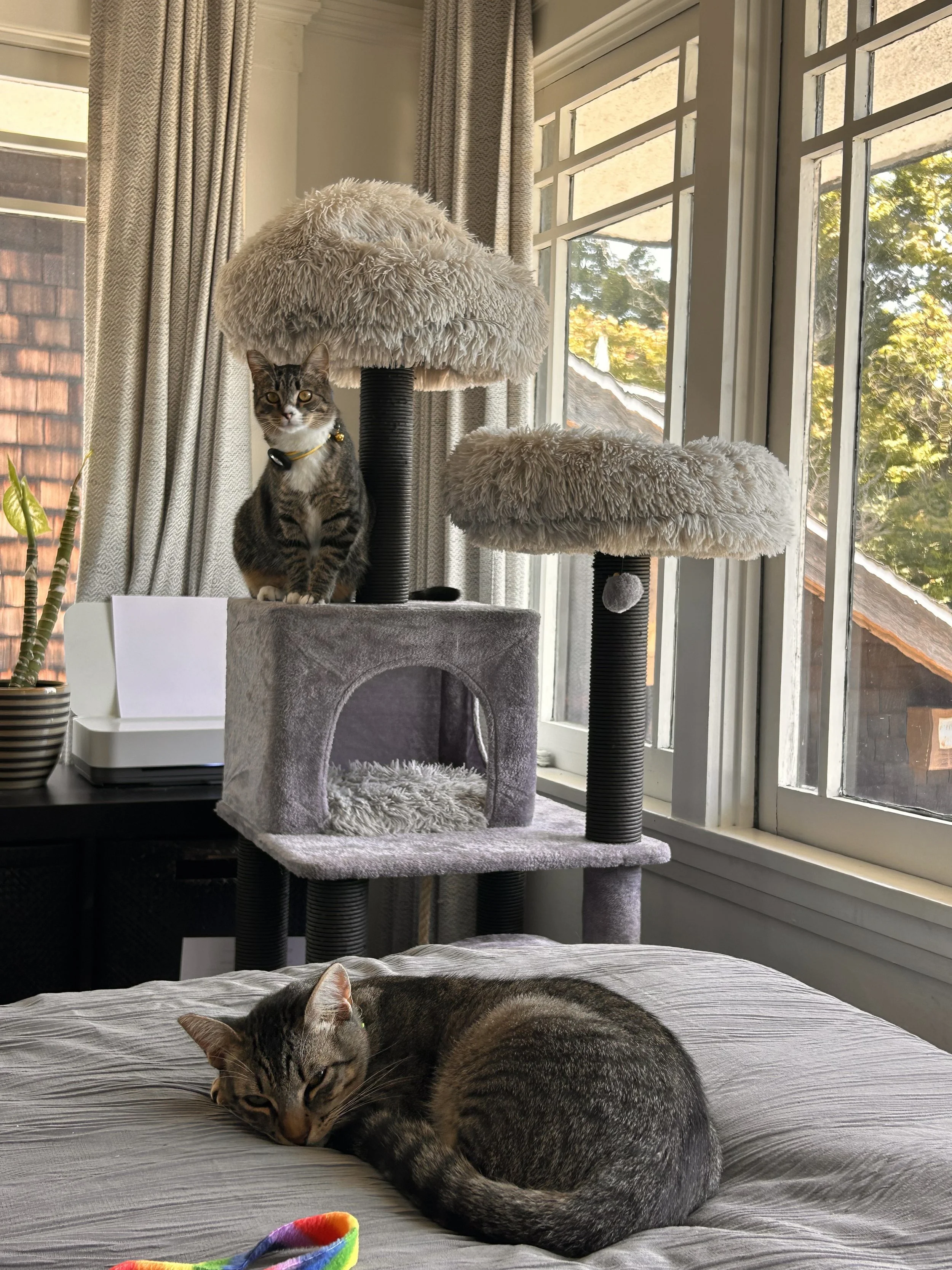 At Cat Town, we often see how cats who might struggle alone will thrive when they have the right friend. Bonded pairs offer comfort, a sense of safety, and a path forward — and are often the source of the most beautiful transformations we get to witness. This month, we’re honoring the magic of bonded pairs: how companionship can help cats build confidence and trust in the world around them. With last month’s 31 adopted cats — 8 seniors, 13 baby kittens, 7 black cats, 10 with medical needs, and 4 with FIV breaking stigmas — we’re also celebrating the adoption of 14 cats in bonded pairs. Read a few of these best friends’ stories below: