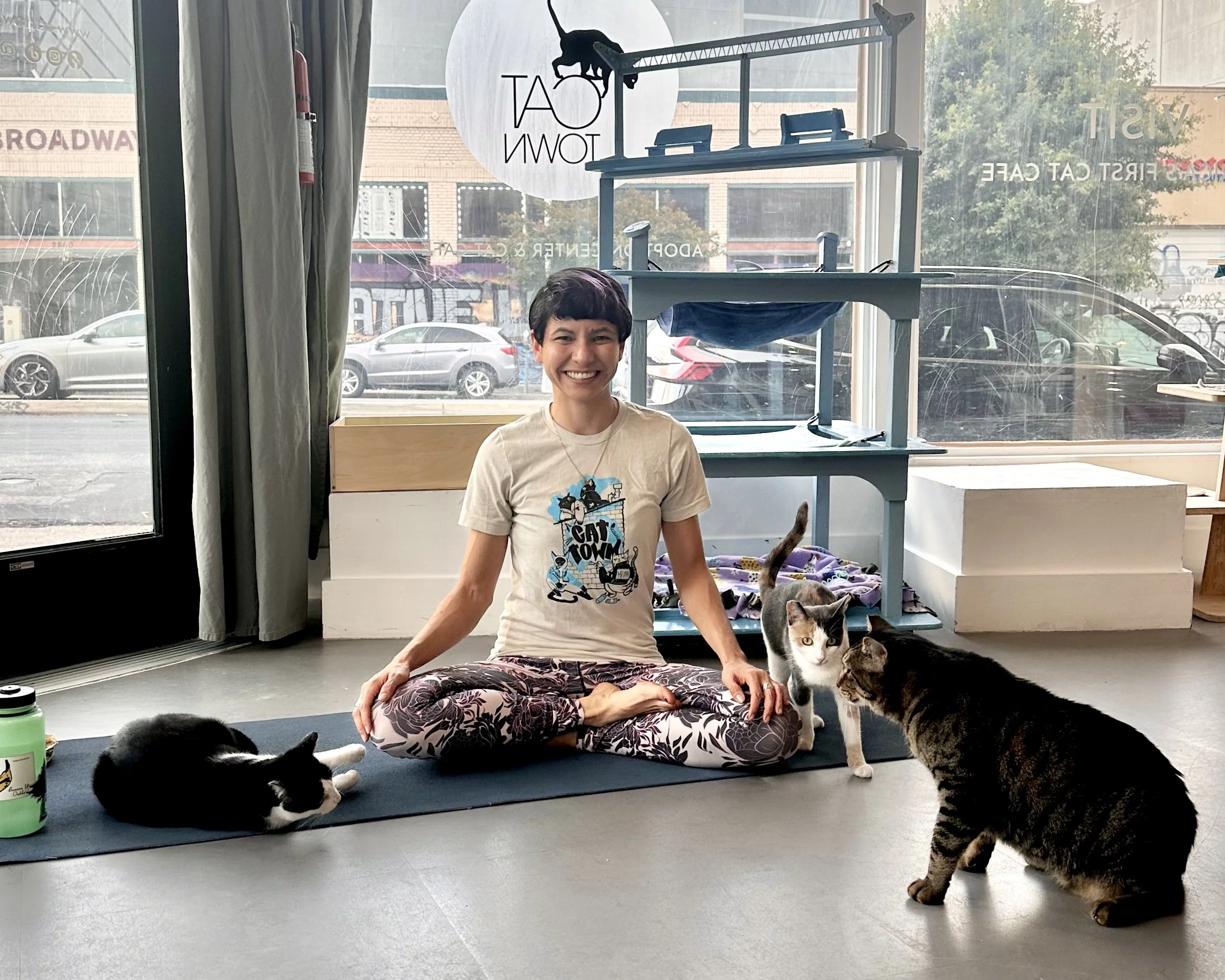 Find serenity with mindful yoga in the uplifting and calming presence of our Cat Zone cats! Join instructor Marlo, owner of Banana Yoga, for a relaxing class tailored for adults 18+ and suitable for all levels. Marlo's teaching focuses on breathing into the experience in our bodies in order to release deeper tension.